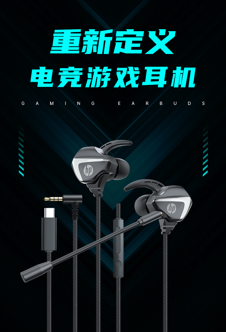 HP惠普电竞游戏专用有线入耳式耳机手机笔记本电脑通用圆孔Type-C