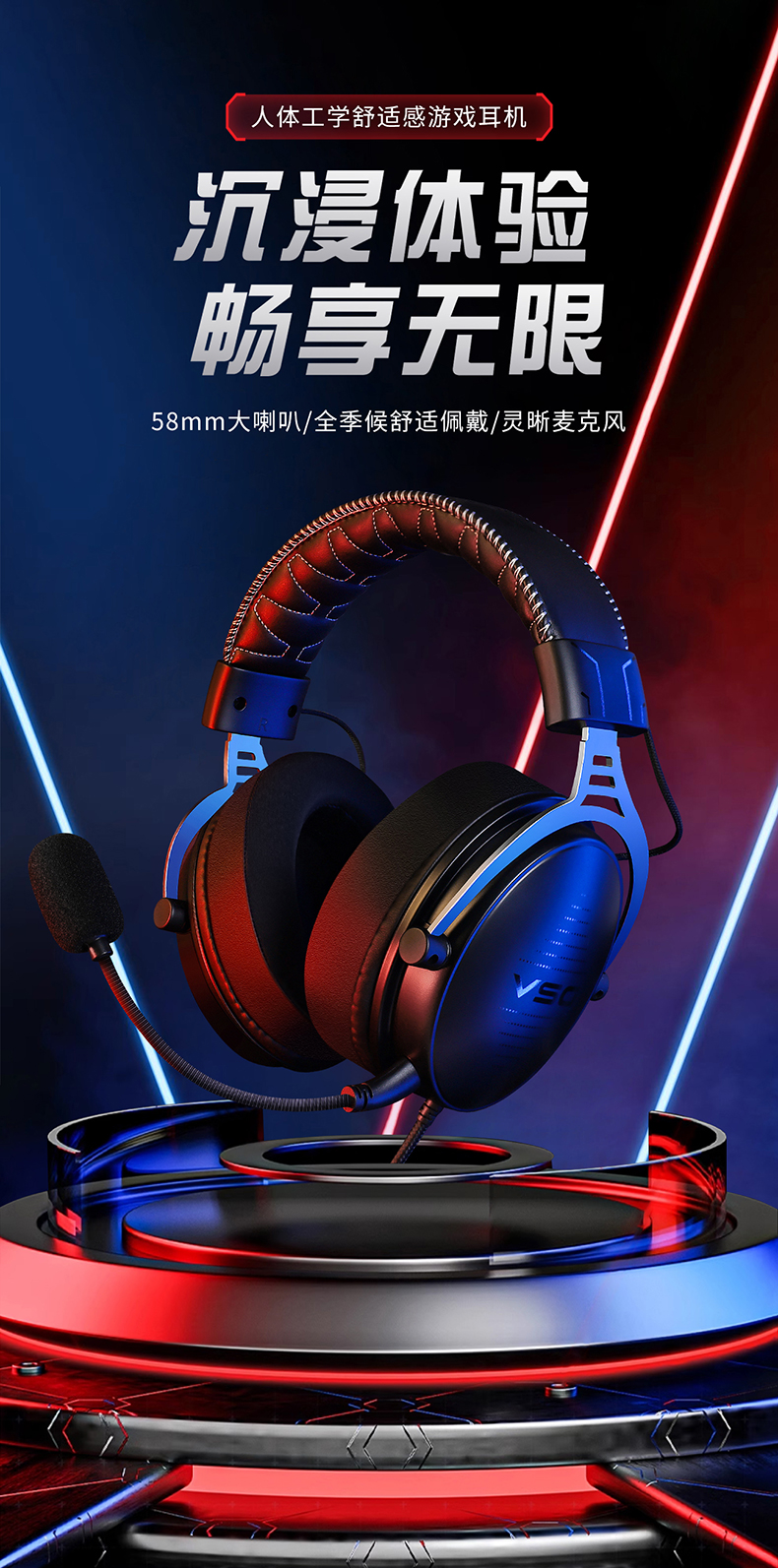 VSG2二代电竞耳机头戴式有线电脑CS吃鸡apex战地fps PS5/Xbox耳机